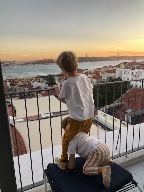 Que vista! Como não consegui aproveitar o roof top para tomar um bom vinho no fim da tarde, pelo menos consegui aproveitar a vista para o Rio Tejo no café da manhã. Só de estar ali, tomando café da manhã no terraço do restaurante, com essa vista, já fazia o dia começar bem com as crianças.