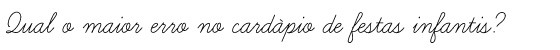 O maior erro é servir cardápio só com comidinhas que agradam as crianças, como frituras, quando na verdade a maior parte dos convidados são adultos. Por exemplo, em festas de aniversário de 01 ano, em geral a maioria dos convidados são adultos, portanto o cardápio deve ser pensando para adultos. Sempre avaliar se na sua festa haverá mais adultos ou mais crianças, pensar em opções que agradem à todos mas priorizando quem é maioria na festa.