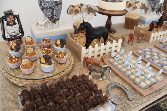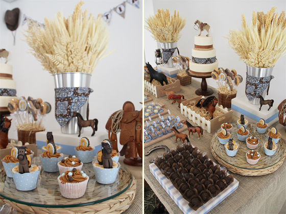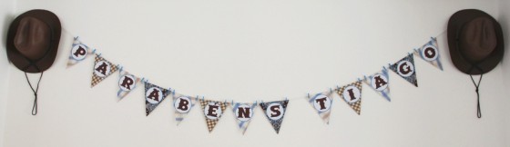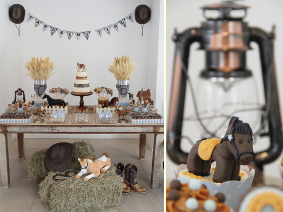 Nossa, nunca tinha visto este tema de festinha. Muito original!! Acho um tema difícil pra decadoradora, um desafio, mas ela se saiu muito, muito bem. Parabéns, ficou muito lindo e de bom gosto. Muitos anos de vida ao cowboy Tiago (lindooooo!).