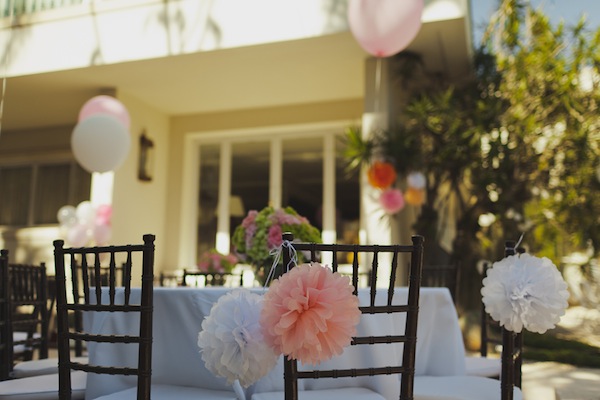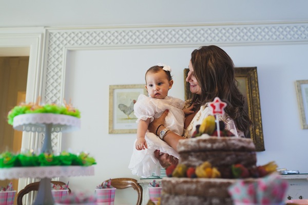 Foi na casa dos avós que Carolina comemorou seu primeiro aniversário, no Rio de Janeiro. O que eu mais amei, além do clima de festa em casa e crianças brincando no jardim, foi a decoração delicada em rosa e verde, com muitos arranjos florais e cupcakes fofos.