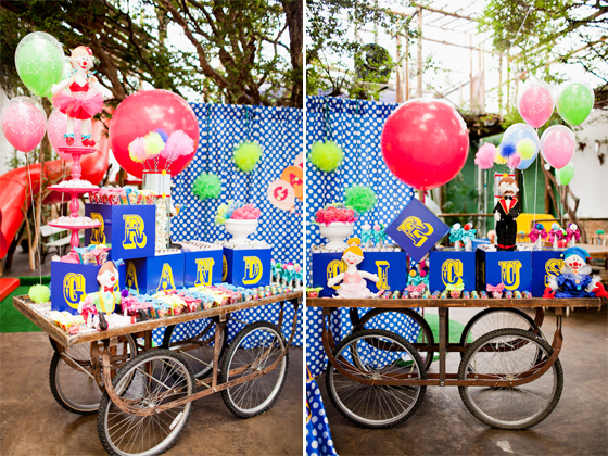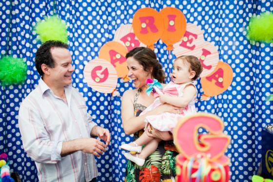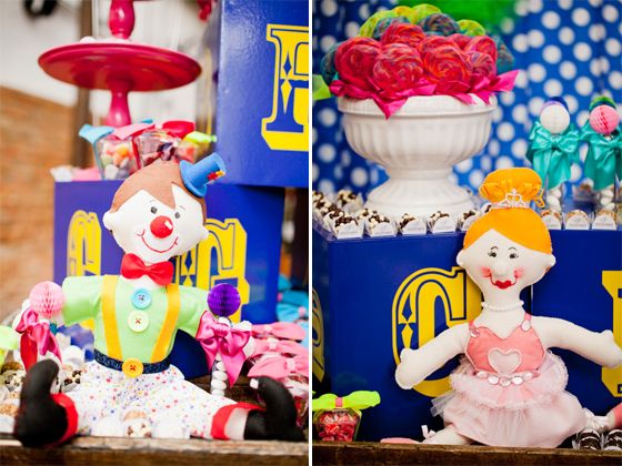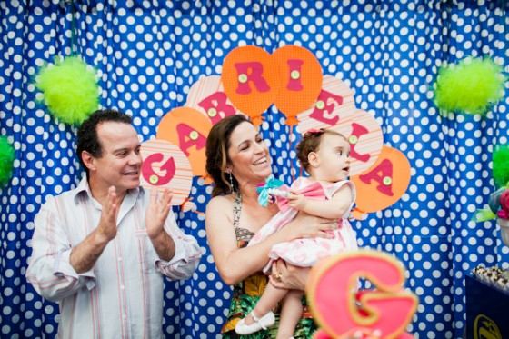 Gabriela fez 1 ano e ganhou uma festa colorida e alegre, com um tema perfeito para festinhas infantil: Grand Circus! Tinha nariz de palhaço, bailarina, mágico, pom-poms, maça do amor. E tinha muita criançada brincando pra valer em muitas aventuras neste espaço de festas. Na hora de ir embora, cupcakes com palhacinho para todo mundo. Está tudo tão feliz que dá vontade de brincar junto!