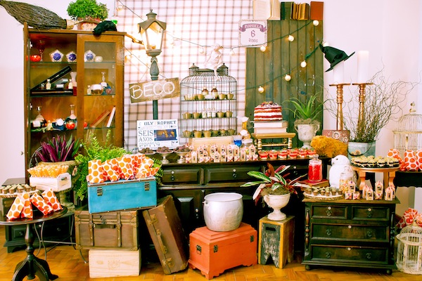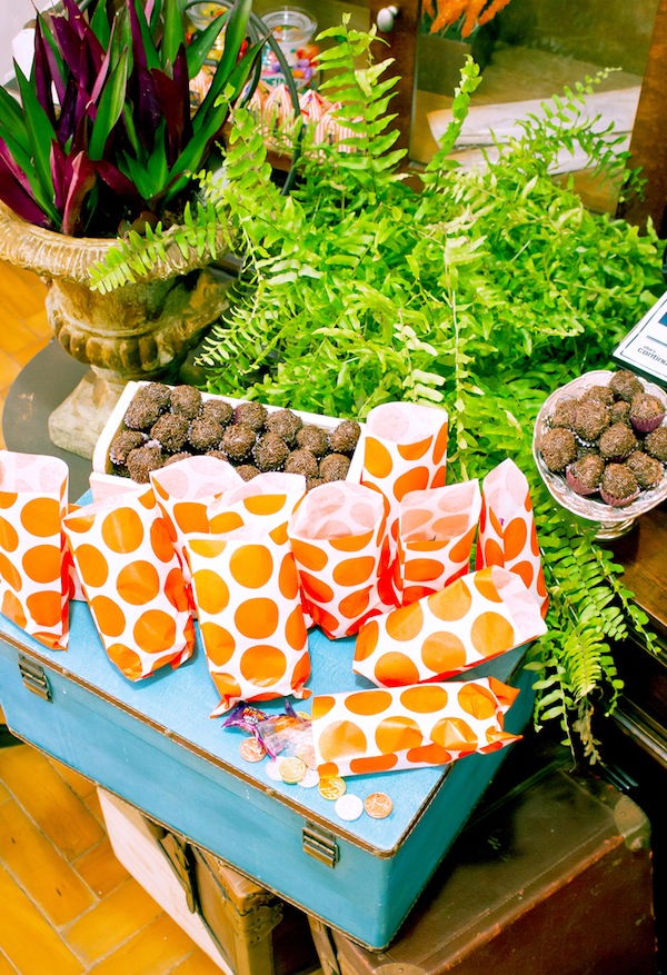 Baús, malas e aparadores em madeira foram usados para dar um toque mais “ inglês” na decoração criada pela Taís Puntel.