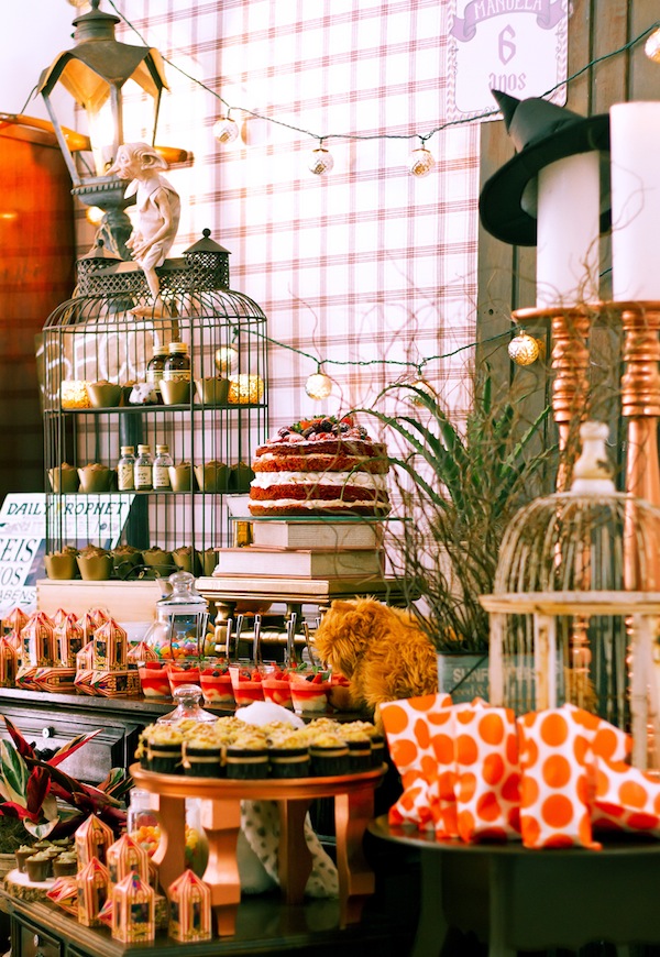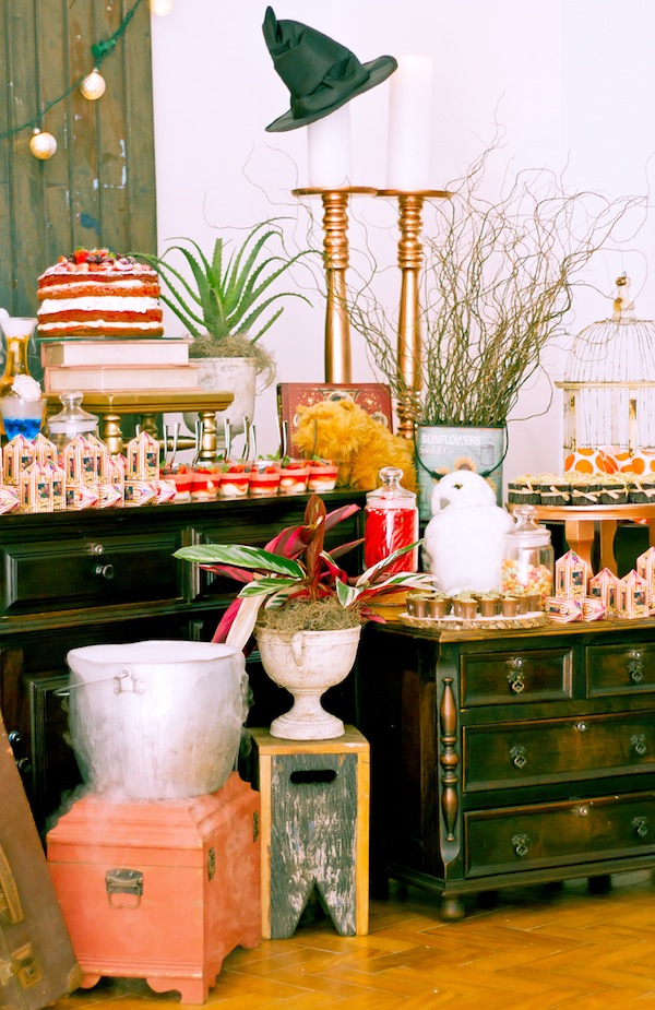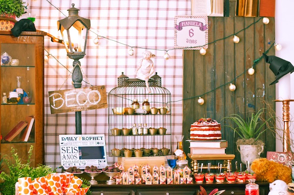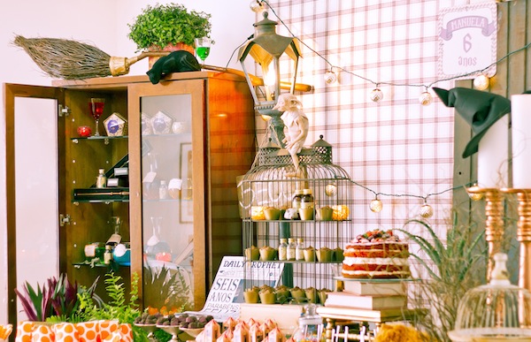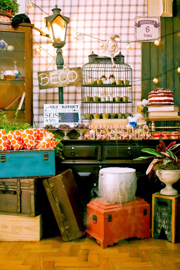 Manu teve uma festa incrível de 6 anos! Encantada por Harry Potter e seu universo, a ideia foi trazer um pouco da magia e dos mistérios deste bruxo tão querido, apropriando de algumas peças originais e outras que foram interpretadas com um toque de criatividade. O caldeirão com fumaça ficou o máximo!