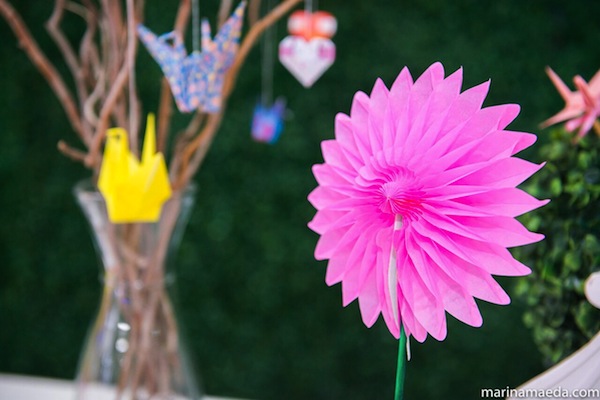 Bom, ela teve uma menininha, a Eduarda completou 1 ano e agora ela está aqui compartilhando a festa de 1 ano da filha! Ela conta um pouco: “Fiz quase tudo sozinha! Sempre adorei fazer origamis e esse foi o tema da festa. Fiz os origamis (tsurus) da decoração, as forminhas dos doces e as flores dos arranjos das mesas. Comprei as bolas e flores de papel pela internet e montei tudo! Os docinhos foi minha mãe quem fez! As fotos são da Marina Maeda“.