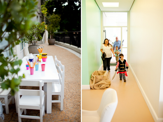 “Eu sou o pirata da perna de pau, do olho de vidro, da cara de mau…” De mau não tem nada na verdade, só alegrias e amor na festa de 4 anos do “Capitão” Benjamin com tema de piratas! Reparem nas comidinhas com nomes de “bala de canhão” e “barras de ouro”. Para interagir e integrar, cada criança ganhou um avental e tinta e vamos todos pintar o barco!