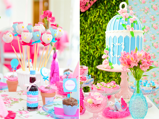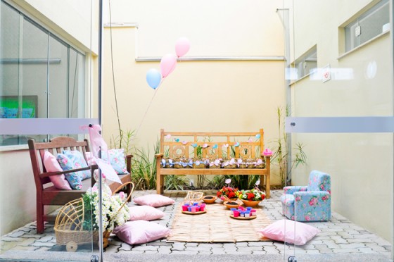 O que achei mais fofo nesta festinha foi a Isadora ter escolhido o tema primavera porque adora a música “Primavera”, do Tim Maia, presente no CD do Música de Brinquedo do Patofu. Uma festa para 20 amiguinhos da escola, na qual cada um tinha seu lugar marcado com a inicial do nome já que eles já sabem reconhecer as letras de forma. Muitas flores, passarinhos e casinhas de tecido, gaiolas, tecido estampado… e uma ideia ótima: oficina de jardinagem para entreter a criançada. A cestinha de palha de lembrancinha foi perfeita! Isadora, parabéns pelas sua 3ª primavera!