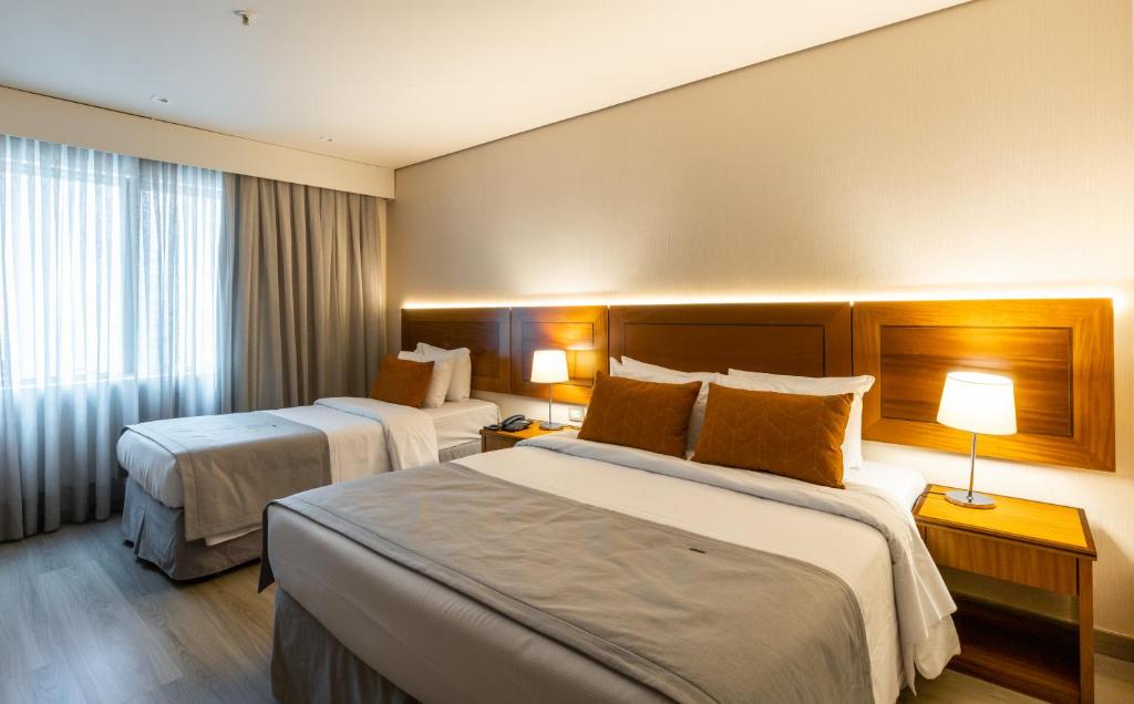 Boa localização. O hotel fica a apenas 2 km do shopping Pátio Paulista, a 3,5 km do Parque do Ibirapuera e a 6 km da arena multiuso Allianz Park. Em frente à estação de metrô Consolação na Avenida Paulista em São Paulo, a apenas 9 Km do Aeroporto de Congonhas e 30Km do Aeroporto Internacional de Guarulhos. Os apartamentos recém reformados Grand Premium e Suíte Junior, com uma decoração moderna e super confortáveis. Amamos por conta das Family Suítes, que acomodam tranquilamente até 4 pessoas. O restaurante Gran Via oferece um cardápio internacional com Room Service 24 horas. Clique aqui para cotação.