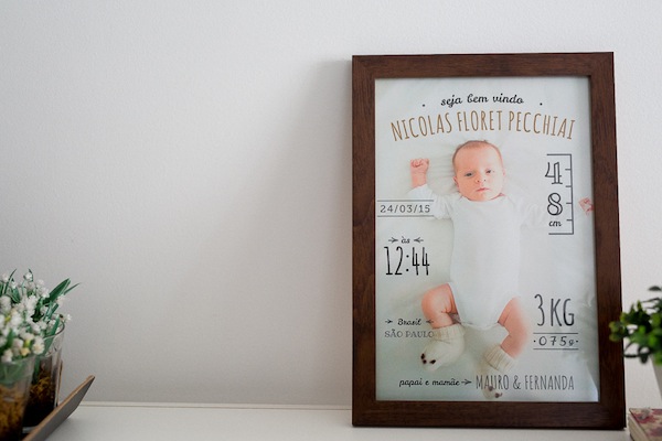 Recebi o meu quadro de boas-vindas em casa justo no dia em que Nicolas completou 100 dias. Não poderia ter presente melhor, amei e não em canso de olhar. No mesmo dia já postei no instagram (@vestidadenoiva) e no snapchat (fernandafloret), não aguentei a ansiedade de compartilhar com vocês. Mas queria mostrar o produto direitinho para vocês aqui.