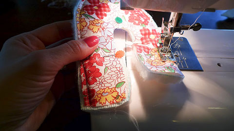 3. Costure os tecidos da sola, unindo parte de cima com a de baixo.