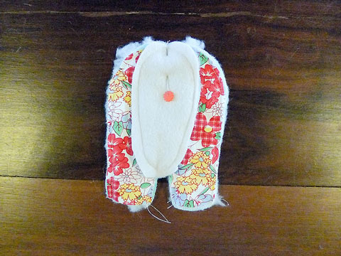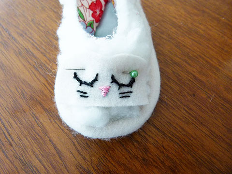 9. Costurei as orelhas no sapato, fazendo uma pequena pence para que ficassem dobradinhas embaixo.